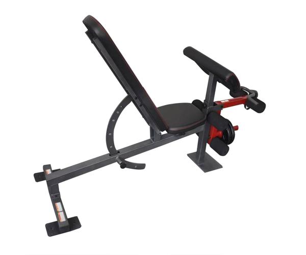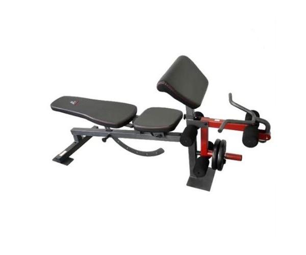 Отдельно стоящая скамья с партой для бицепса и рычагом для тренировки ног (сгибание / разгибание). Спинка скамьи позволяет отрегулировать угол наклона. Изготовлена из прочного стального профиля.