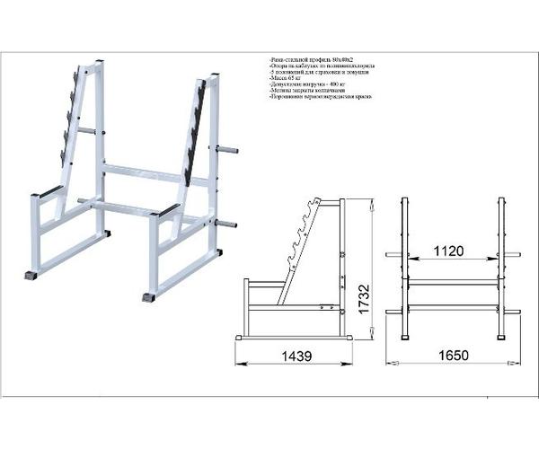 Сталь выдерживает нагрузку до 400 килограмм. Размеры стойки дают достаточно пространства для маневра и позволяют пользователям любой комплекции тренироваться с максимальной нагрузкой и комфортом.