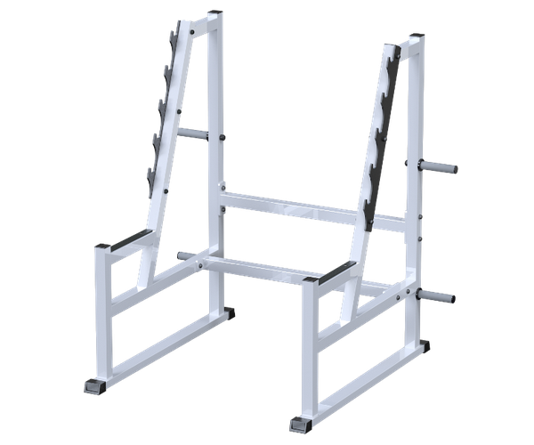 Силовой тренажер для приседаний предназначен для тяжелых приседаний со штангой. Стойка оснащена высокопрочными крюками, которые позволяют разместить штангу на разной высоте, кроме того имеются страховочные площадки, которые не ограничивают амплитуду движений и при этом делают упражнения наиболее безопасными. Прочная и жесткая конструкция тренажера позволяет проводить занятия со спортсменами любого уровня. Для устранения скольжения и увеличения устойчивости тренажер имеет резиновые подпятники.