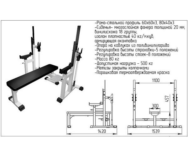 • Конструкция тренажера изготовлена из профиля 60х60х3 мм, 80х40х3 мм