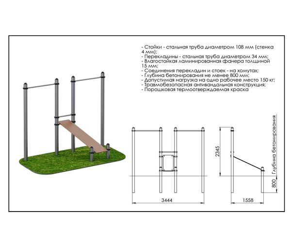 • Перекладины из трубы диаметром 34 мм, крепятся к стойкам при помощи хомутов