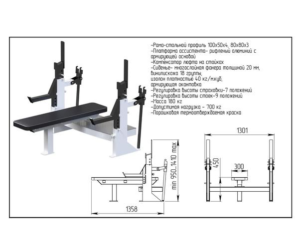 Скамья для жима лежа AR010 предназначена как универсальный снаряд для разных групп упражнений в пауэрлифтинге.