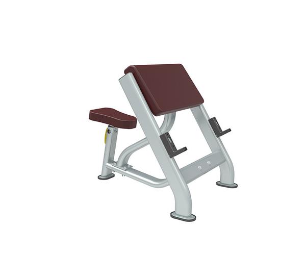 Скамья имеет удобное сиденье для комфортного положения тела, наклонную подставку, на которую опираются локти во время сгибания для исключения работы плечевого пояса, а так же фиксатор штанги.