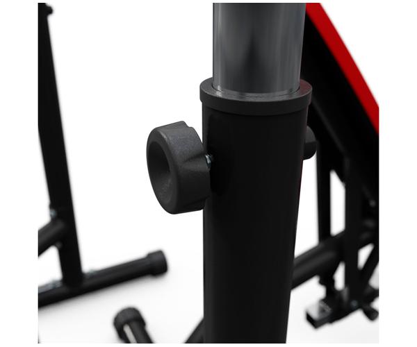 • Стойки: регулируются по высоте от 123 до 137.5 см, что позволяет выполнять упражнения с разными видами штанг и гантелей.