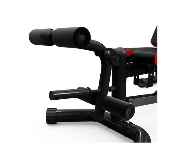 Рама скамьи изготовлена из высокопрочной стали с профилем 76x1.5 мм, что гарантирует ее долговечность и надежность. Валики для ног могут быть дополнительно утяжелены дисками для повышения эффективности тренировки. Благодаря специальной конструкции скамья обладает высокой устойчивостью и безопасностью использования.