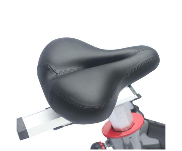 Сиденье имеет эргономичную форму и регулируется по высоте и в горизонтальной плоскости для удобной посадки во время тренировки. Для регулировки не требуется специальный инструмент, модель оснащена удобными фиксаторами положения. Подседельный штырь изготовлен из стального профиля, и имеет матовое покрытие, что позволяет избежать царапин на поверхности при регулировке сиденья.