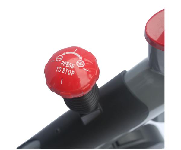 Регулировка нагрузки бесступенчатая, с помощью рукоятки на корпусе тренажера. В случае необходимости ручка одновременно служит экстренным тормозом, чтобы мгновенно остановить маховик.