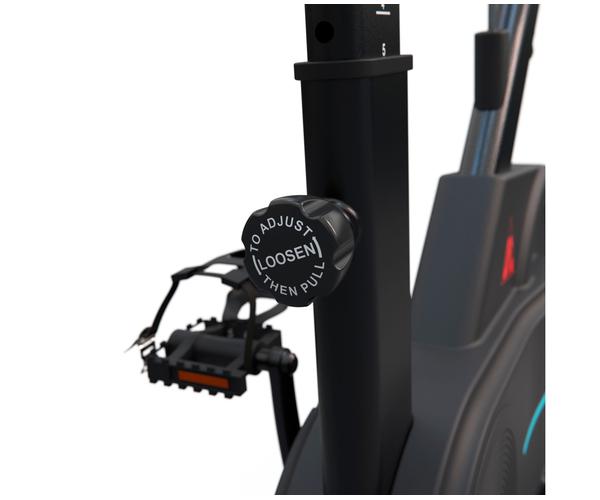 Высота руля регулируется в восьми положениях, что позволяет выбрать наиболее удобное положение, варьируя интенсивность тренировки. Сиденье регулируется как по вертикали, так и по горизонтали.