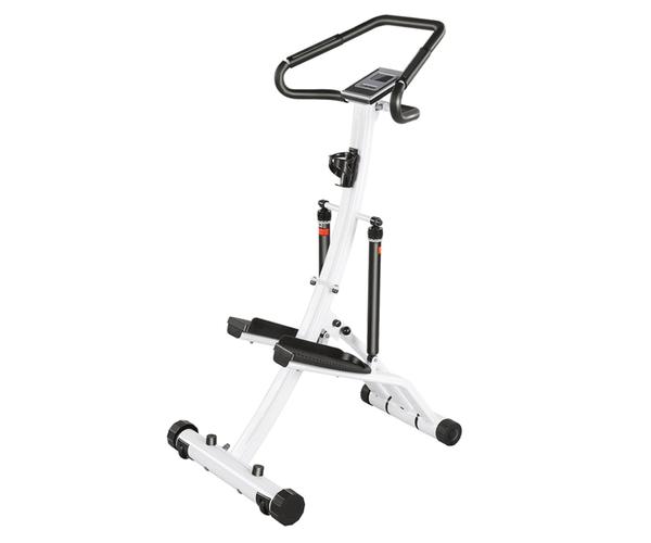 Домашний степпер DFC SC-S039 со стойкой и удобным поручнем. Степпер оснащен колесиками и транспортировать его не составит труда. Для удобства пользователя производитель предусмотрел держатель бутылки. Гидроцилиндр, которых у данной модели два, можно настроить за двенадцать шагов. Встроенный компьютер выводит на дисплей все нужные показатели:  время, количество шагов за тренировку, ритм, шаг/мин, израсходованные калории. Максимальный вес пользователя не должен превышать 120 кг.