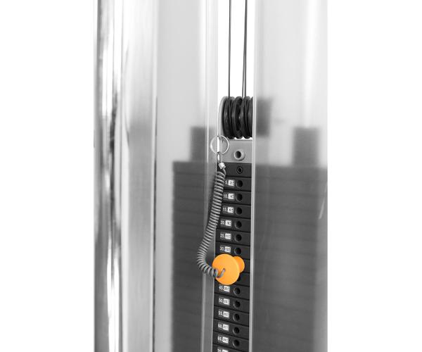 Полное зачехление весового стека закрывает шкифы, весовые плиты и другие механизмы и делает внешний вид тренажера более привлекательным.