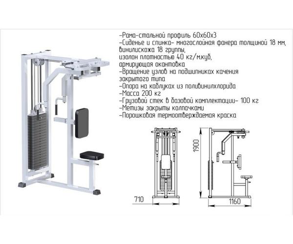 Грузоблочный стек состоит из грузов весом по 5кг и верхним грузом с направляющей. Устойчивая  конструкция тренажера Баттерфляй - задние дельты дает возможность проводить занятия со спортсменами любого уровня. Для устранения скольжения и увеличения устойчивости тренажер имеет резиновые подпятники.