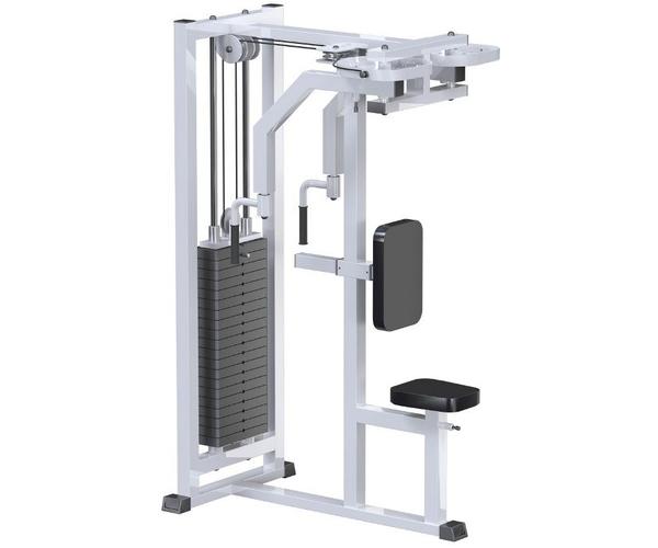 Баттерфляй - задние дельты предназначен для тренировки грудных и задних дельтовидных мышц. Рукояти тренажера настроены таким образом, что позволяет тренироваться любым спортсменам  с разной длиной рук, а также сделать движения естественными, что роднимо с  разведением гантелей лежа. Благодаря пружинным штырям рукояти легко переводятся из положения для сведения рук в положение разведения рук. Нагрузка при выполнении упражнений создается с помощью грузоблоков.