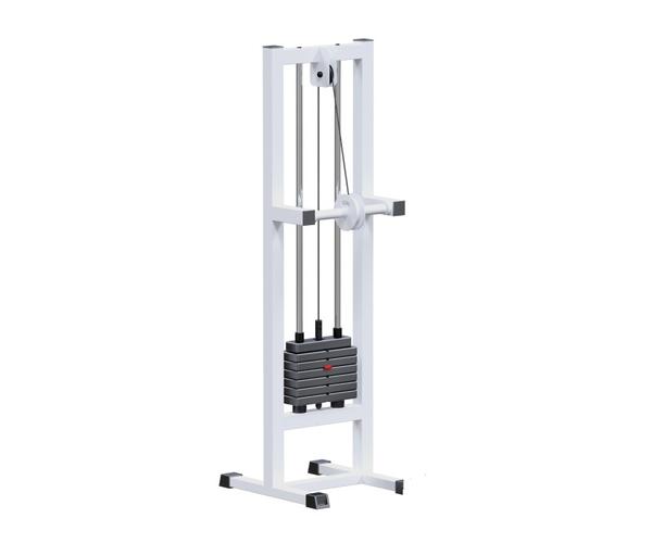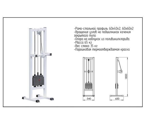 • Грузоблочный стек тренажера состоит из металлических обрезиненных плит весом по 5 кг, и хромированных направляющих. Изменение нагрузки происходит при помощи металлической иглы(фиксатора). Для приведения в движение грузов используется трос 5 мм в пвх оплетке с усилием на разрыв 500 кг с максимальной нагрузкой – 800 кг. Грузовой стек в базовой комплектации – 35 кг