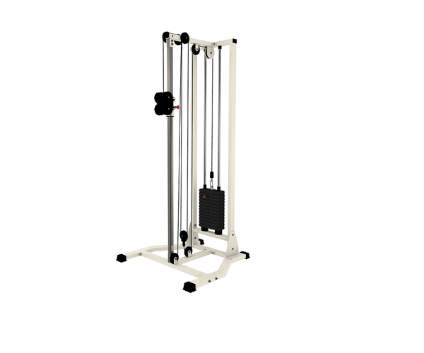 Перемещающийся ригель снабжен двумя ручками. Благодаря системе блоков вы можете регулировать нагрузку не только с помощью стека, но и с помощью тяги за одну или две ручки. Центральная балка тренажера выполнена из нержавеющей стали, она не подвержена износу и коррозиям.