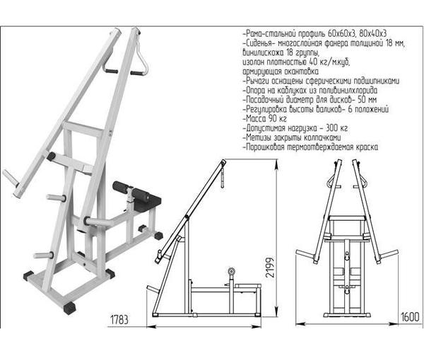 • Габариты тренажера (ДхШхВ) - 1780*1600*2200мм ;