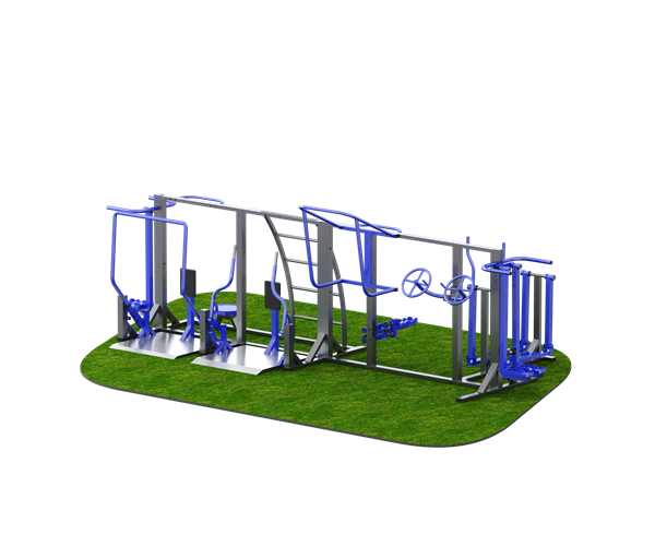 Уличный тренажерный комплекс на раме INVAR410 предназначен как для одного пользователя, так и для нескольких одновременно.