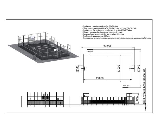 • Стойка для баскетбола из профильной трубы 100х100х4 мм, щит из влагостойкой фанеры толщиной 18 мм