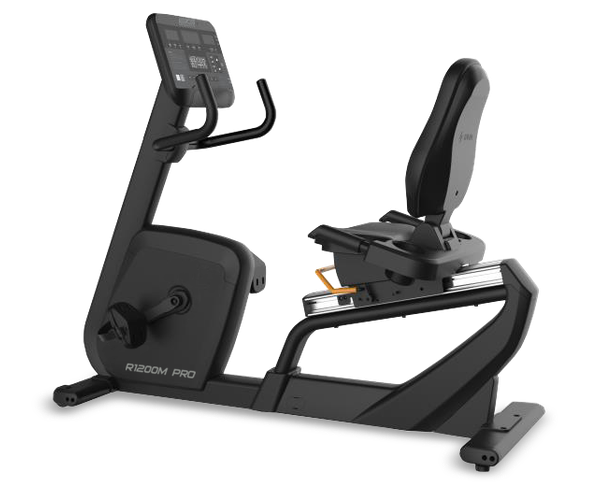 R1200M PRO идеально подойдет для тех, у кого есть проблемы со спиной. Сиденье со спинкой профессионального класса имеет возможность горизонтальной регулировки. Широкое и очень мягкое, выполненное в анатомической форме с гелевыми вставками. Направляющая рельса сиденья сделана из алюминиевого сплава. Рифленые самобалансирующиеся педали с прорезиненными многопозиционными ремешками обеспечивают надежное сцепление на любых скоростях. Велотренажер удобно перемещать благодаря двум транспортировочным роликам, а точное горизонтальное положение обеспечивают компенсаторы неровностей пола. Максимальный вес пользователя - 180 кг.