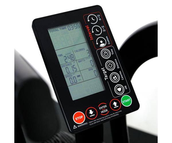 Когда вы начнете крутить педали, компьютер сразу же отследит расстояние, время, скорость, калории, ватты и частоту сердечных сокращений. Консоль также позволяет переключаться между метрами или милями и отображает очень точные результаты. Кроме того, можно установить расстояние на SET или TARGET.