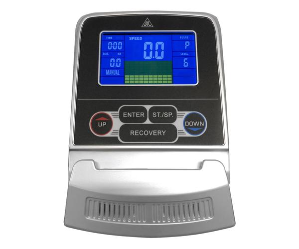 Монохромный LCD монитор с синей и зелёной подсветкой отображает пульс, скорость, расстояние и другие параметры занятия. Предусмотрена 21 программа тренировок. На консоли также имеется подставка под телефон или планшет.