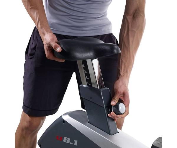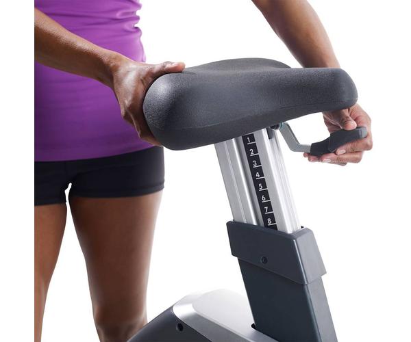 Велотренажёр оборудован сиденьем, положение которого можно подстроить под свои индивидуальные параметры при помощи регулировочного штифта, что обеспечивает удобную работу с тренажёром для людей разного роста и телосложения.\