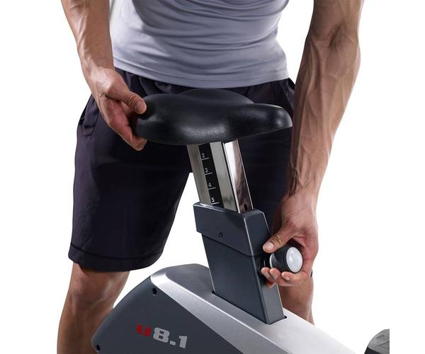 Велотренажёр оборудован сиденьем, положение которого можно подстроить под свои индивидуальные параметры при помощи регулировочного штифта, что обеспечивает удобную работу с тренажёром для людей разного роста и телосложения.