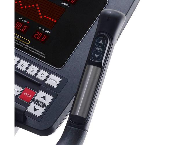• Показания консоли: скорость, продолжительность тренировки, пройденное расстояние, уровень сопротивления, частота пульса, количество сожженых калорий, уровень нагрузки (в Вт).