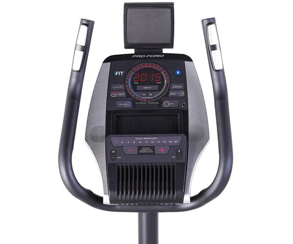 Включает в себя 20 программ тренировок, 20 уровней электромагнитного сопротивления. Плавный ход маховика, удобное сиденье и эргономичные педали с фиксирующими ремешками позволяют двигаться как на обычном велосипеде. Встроенные в ручки тренажера датчики пульса EKG™ Grip Pulse помогут контролировать частоту сердечных сокращений на протяжении тренировки. А вмонтированный в консоль двухскоростной вентилятор CoolAire™ обеспечивает вокруг комфортную прохладу во время занятий. LED-дисплей, с круглым, интуитивным интерфейсом и поддержкой технологии iFit®, дает возможность сохранять и отслеживать результаты тренировок. Держатель для планшета, два встроенных динамика и порт для подключения iPod®.