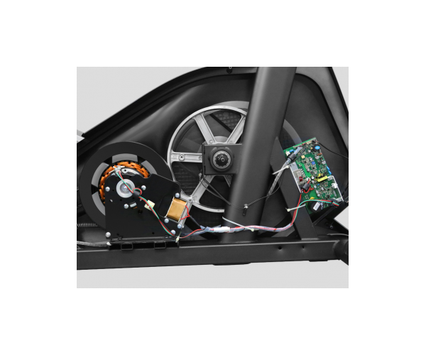 К числу основных преимуществ FORCE R750 LX относится индукционная система нагружения (индукционный тормоз). На сегодняшний день это наиболее совершенная сиcтема нагрузки у вело- и эллиптических тренажеров. Торможение маховика происходит за счет магнитного поля, которое создается катушкой с поданным на неё электрическим током, расположенной в непосредственной близости от маховика. При увеличении силы тока в проводах катушки возрастает сила магнитного поля, и наоборот - при уменьшении силы тока поле ослабевает, за счет чего и происходит изменение нагрузки. Преимущества индукционного тормоза следующие. Во-первых, число взаимодействующих трущихся элементов сведено к минимуму, поэтому и общая надежность системы гораздо выше. Во-вторых, ход тренажера гораздо мягче и плавнее, уровень шума при этом ниже тренажеров с иной системой нагружения. В-третьих, индукционному тормозу (в связке с генератором) не нужно подключение к сети - а это экономия электричества и отстутствие лишних проводов.