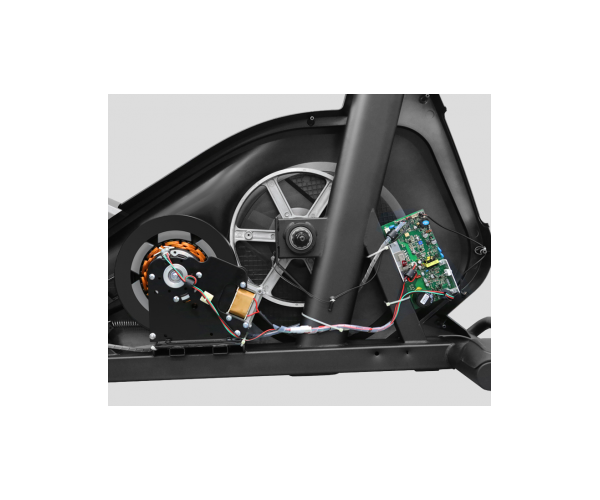 К числу основных преимуществ FORCE U750 LX относится индукционная система нагружения (индукционный тормоз). На сегодняшний день это наиболее совершенная сиcтема нагрузки у вело- и эллиптических тренажеров. Торможение маховика происходит за счет магнитного поля, которое создается катушкой с поданным на неё электрическим током, расположенной в непосредственной близости от маховика. При увеличении силы тока в проводах катушки возрастает сила магнитного поля, и наоборот - при уменьшении силы тока поле ослабевает, за счет чего и происходит изменение нагрузки. Преимущества индукционного тормоза следующие. Во-первых, число взаимодействующих трущихся элементов сведено к минимуму, поэтому и общая надежность системы гораздо выше. Во-вторых, ход тренажера гораздо мягче и плавнее, уровень шума при этом ниже тренажеров с иной системой нагружения. В-третьих, индукционному тормозу (в связке с генератором) не нужно подключение к сети - а это экономия электричества и отстутствие лишних проводов.