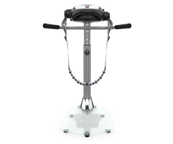 Удобство конструкции. Массажёр имеет компактную и надёжную конструкцию. В качестве основания использована гальваническая труба диаметром 76 мм и толщиной 1,5 мм. Платформа выполнена из закалённого стекла. Максимально допустимый вес пользователя — 110 кг. В комплектацию входят 2 массажных пояса, которые крепятся к передней консоли. Для удобства и безопасности предусмотрены два поручня по бокам.