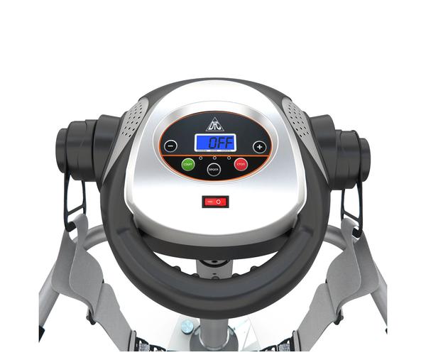 Регулировка тренажёра. Тренажёр позволяет регулировать высоту консоли в 5-ти положениях по вертикали. Массажёр VM20 работает на 20-ти разных скоростных режимах, которые вы сможете подобрать в зависимости от задач и области воздействия. Мотор постоянного тока мощностью 100 Ватт. Есть 6 встроенных режимов тренировки, а также ручной, обратный отсчёт времени и калорий.