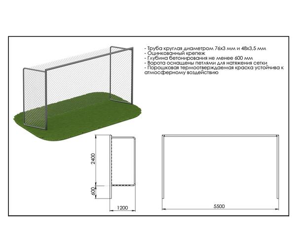 • Ворота бетонируются на глубине 600 мм. Задние стойки изготовлены из трубы диаметром 48х3,5 мм. Передняя рама изготовлена из трубы диаметром 76х3 мм
