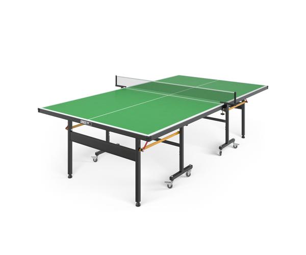 Теннисный стол состоит из двух независимых половинок с технологией складывания Compact. У модели есть возможность одиночной игры, для этого необходимо снять сетку.