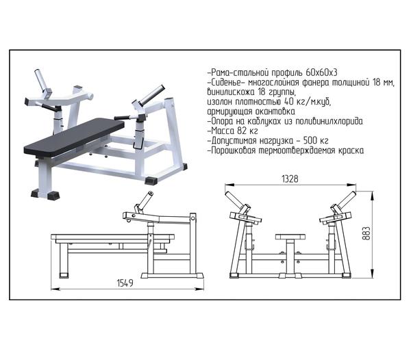 • Конструкция тренажера изготовлена из стального профиля 60х60х3 мм