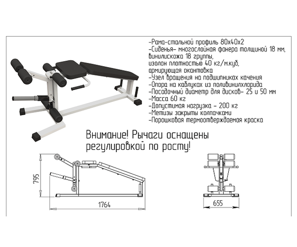 • Габариты тренажера (ДхШхВ) - 2190*900*1320 мм;