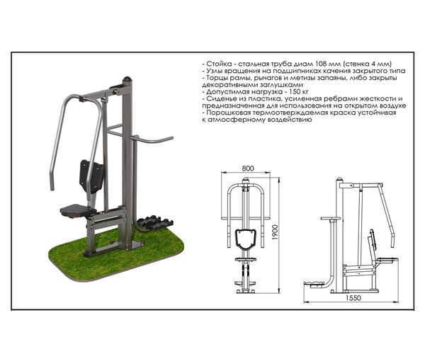 • Хваты для рук - рычаги изготовлены из трубы диаметром 42,3 мм